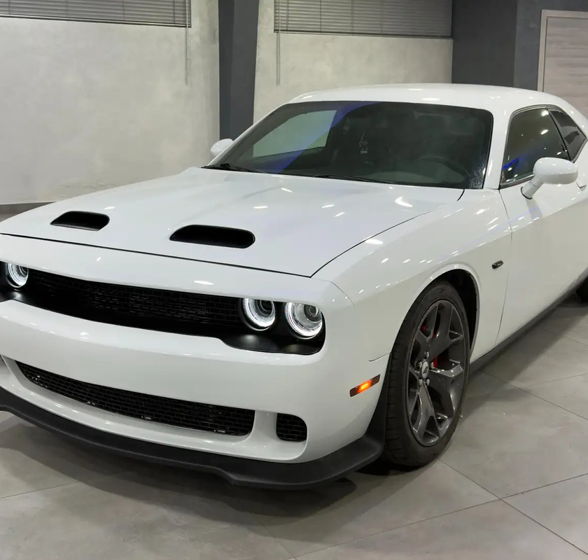 La Dodge Challenger 5.7 V8 R/T del 2019 è una delle interpretazioni più autentiche del concetto di coupé sportiva americana. È un’auto che punta sull’impatto visivo e sull’emozione, più che sulla ricerca esasperata della perfezione tecnica. La linea esterna è immediatamente riconoscibile: proporzioni muscolose, cofano lungo, coda corta e una presenza su strada che richiama le grandi classiche del marchio. Il colore White Knuckle Clear Coat esalta i volumi e i giochi di luce sulla carrozzeria, creando un contrasto deciso con gli elementi scuri, come griglia frontale, prese d’aria e dettagli dei gruppi ottici. È una vettura che comunica forza, tradizione e un certo gusto per l’esuberanza stilistica, pensata per chi considera l’auto anche come espressione di personalità.